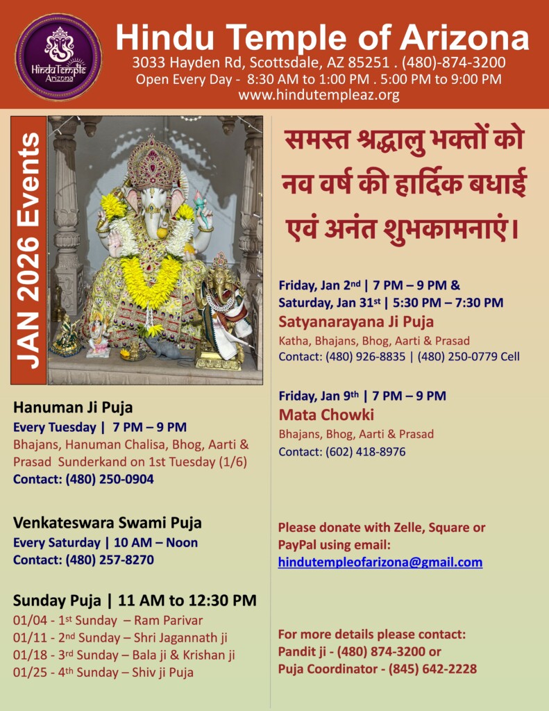 Hindu Temple Of ArizonaDonations to Temple