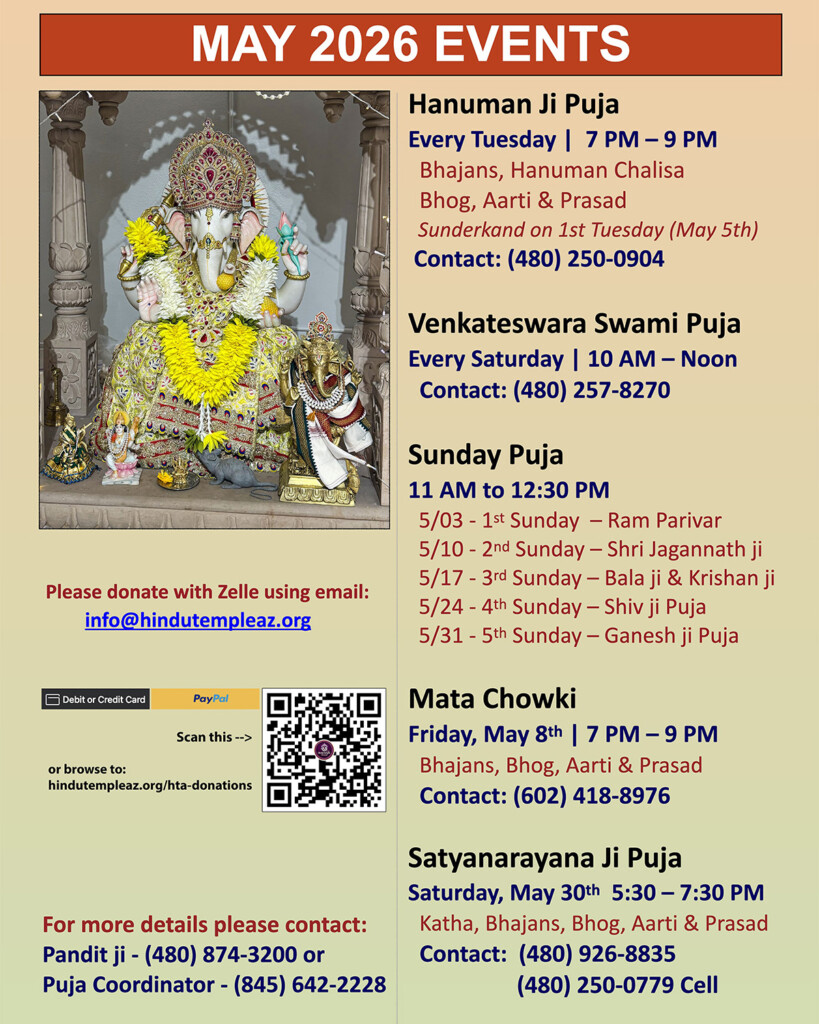 Following services are provided by the Hindu Temple of Arizona. The donation amount associated with each listed service below is merely a suggested donation...