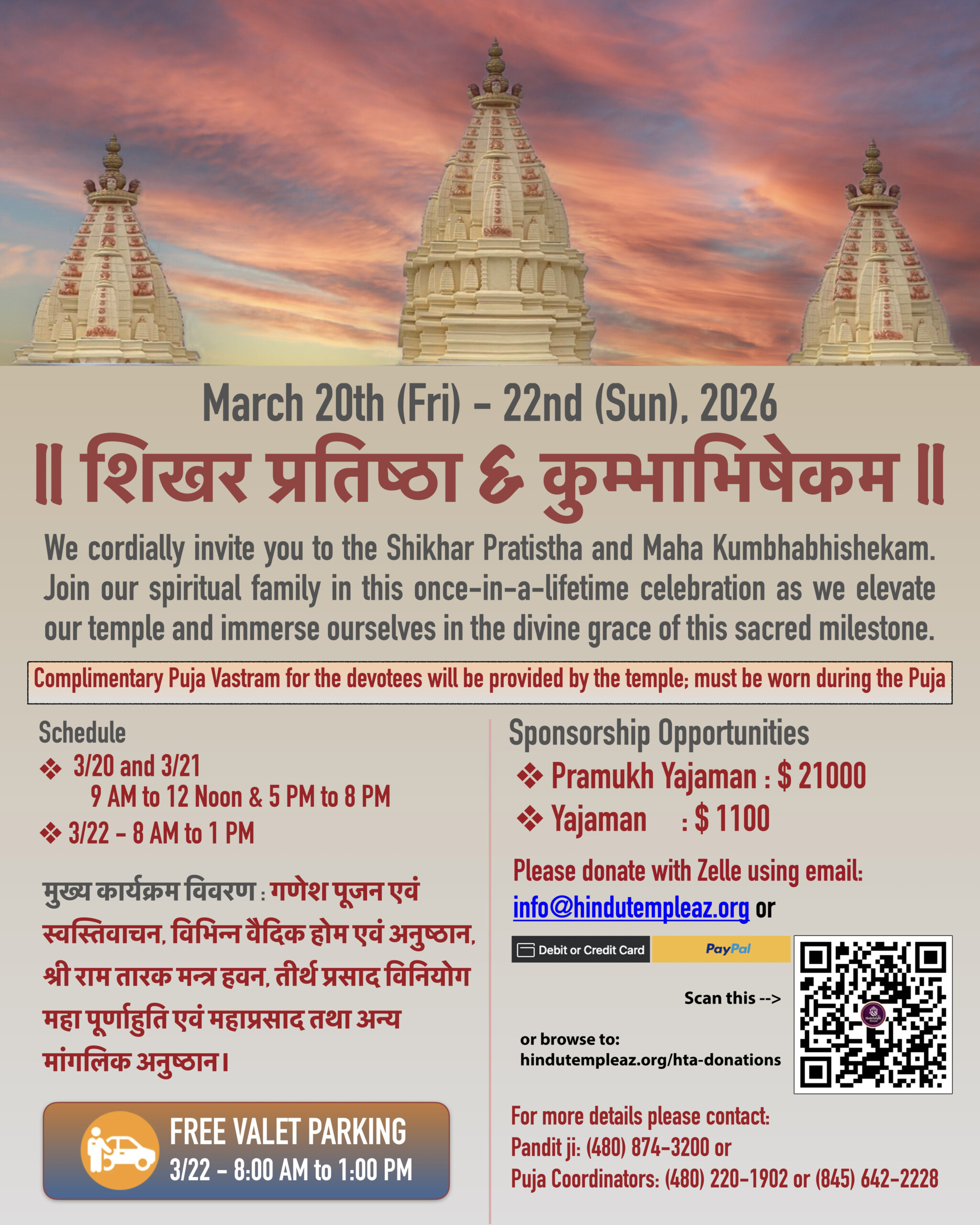 Hindu Temple Of ArizonaDonations to Temple