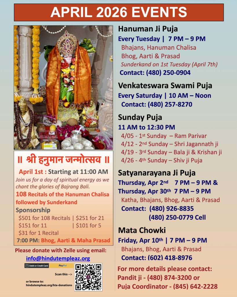 Following services are provided by the Hindu Temple of Arizona. The donation amount associated with each listed service below is merely a suggested donation...
